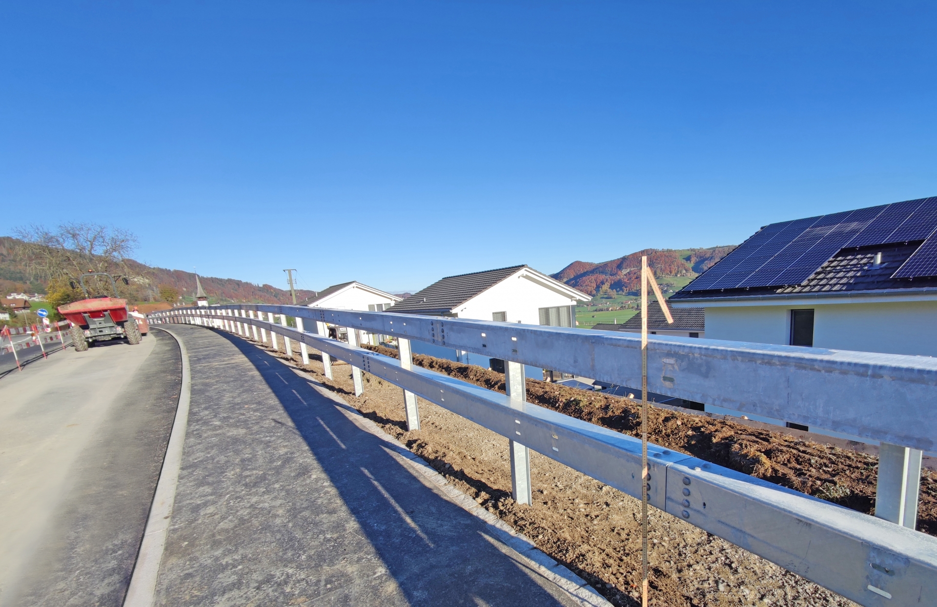 Das Tiefbauamt des Kantons Bern (OIK II) beabsichtigt ein Neubau des Gehweges zur Sicherstellung einer durchgehenden Fusswegverbindung entlang der Kantonsstrasse mit Anpassungen des Strassenanschlusses und der Einspurstrecke auf der Strassenkreuzung. Gleichzeitig sollen die Defizite der Bernstrasse gemäss den kantonalen Standards für Kantonsstrassen beseitigt werden. Durch die Erstellung einer Überbauung wurde der Zugang zu einer landwirtschaftlichen Fläche (Weide) für einen Landwirt mit seinem Vieh zerschnitten. Somit ist der Zugang zur Weide wie bis anhin nicht mehr möglich. Deshalb wurde ein Viehweg entlang der Bernstrasse oberhalb der Überbauung mittels einem Böschungseinschnitt als Drittprojekt erstellt.
