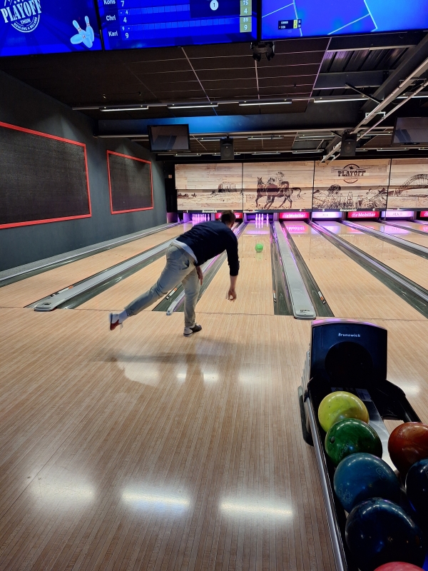 Die Stimmung war von Anfang an großartig, es wurde gelacht, angefeuert und auch über den einen oder anderen weniger erfolgreichen Wurf geschmunzelt. Nach einer lebhaften Bowlingrunde begaben wir uns ins Restaurant, wo bei gutem Essen und entspannter Atmosphäre über die besten Strikes des Abends und mehr diskutiert wurde. Im Anschluss wurden noch einige Runden Billard gespielt und auch auf dem Dartboard landeten ein paar Treffer. So wurde in den unvergesslichen Abend weitergespielt.