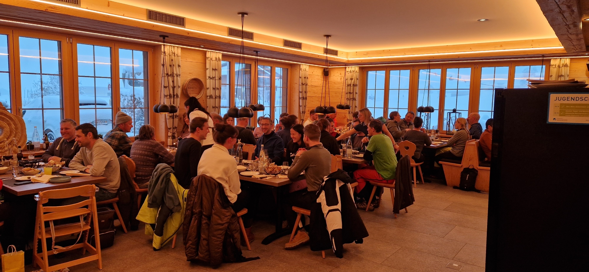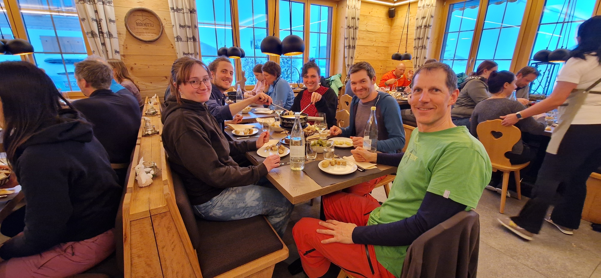 Zum Abschluss dieses besonderen Wintertages trafen wir uns am Abend im Restaurant Bodehüttli zu einem gemütlichen Fondueessen. In geselliger Runde liessen wir den Tag ausklingen.